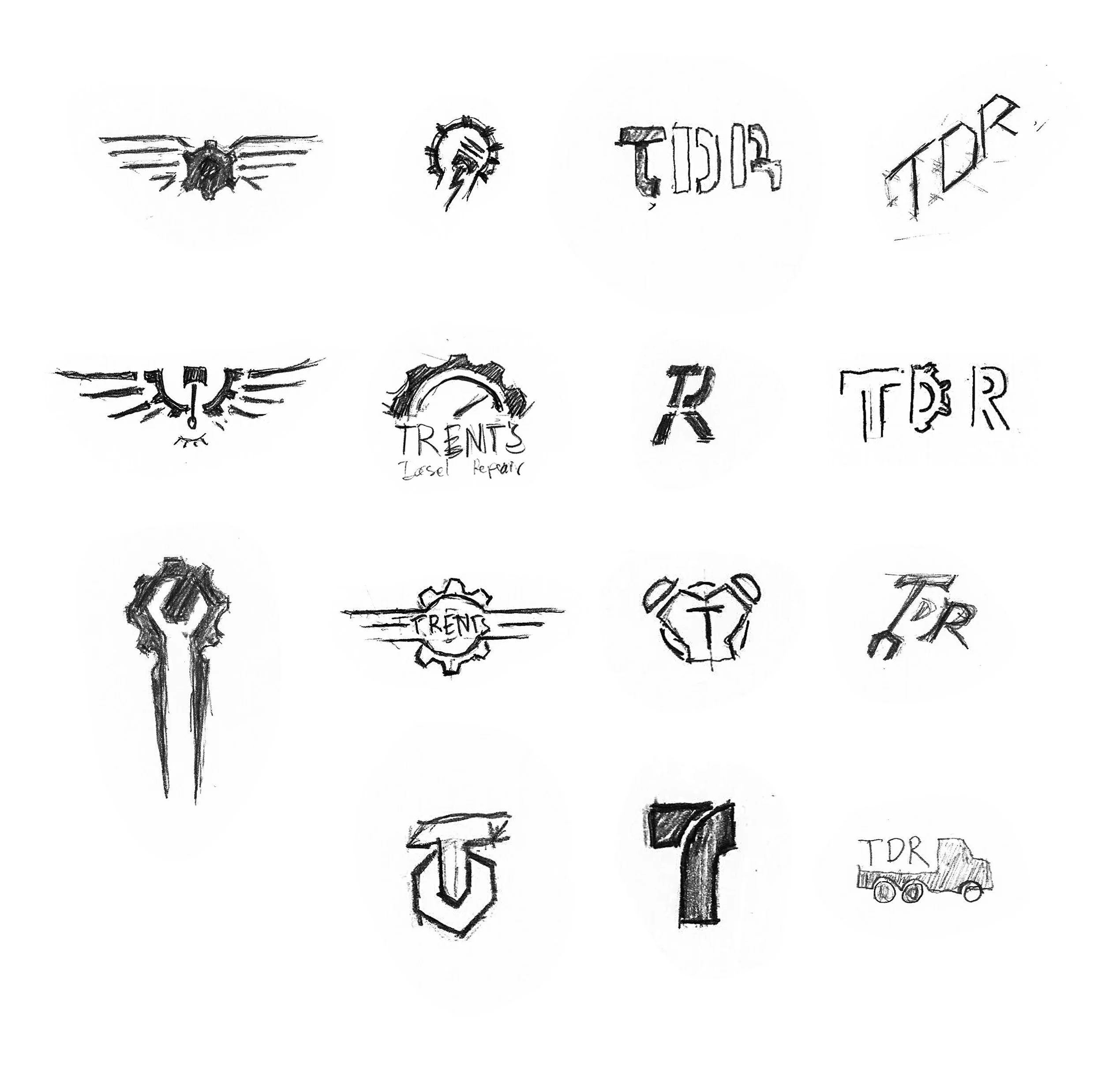 I begin with pencil sketches, striving for conceptual variation. Since the client was unsure about the final look, I sketched a mix of graphic logos, abstract icons, lettermarks.